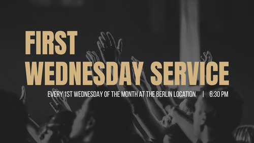 Join us at our Berlin location the first Wednesday of the month at 6:30 for a night of Worship, Prayer, and Connection.